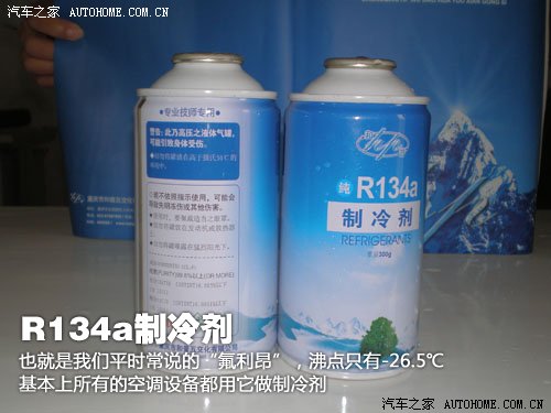 其实汽车空调和我们家用的普通空调原理相同,都是通过压缩机把R-134a制冷剂从气态压缩为液态,然后经过冷凝器再变为气态大量吸热制冷的原理(R-134a就是我们平时常说的氟利昂,一般空调类的制冷设备都是使用的这种制冷剂)。