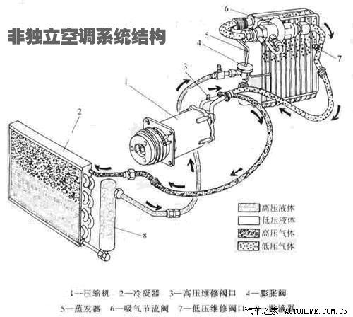 一般汽车空调分为独立空调系统和非独立空调系统两种: