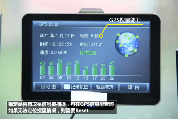 小结:新机在第一次启动时时间较长是正常的,2到10分钟均属正常范围,而一旦GPS定位之后,后期再次使用就可以很快进入工作了。如果出现GPS定位慢或无法定位的时候,大家需确定是否有卫星信号被捕捉,如果无法定位,则需要Reset。