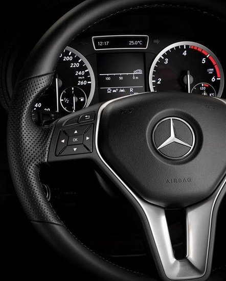 我们知道,新B级的定位更加接近主流紧凑级轿车的行列,在其内饰的设计上也更加的富有动感。立体式的突出仪表台上,奔驰特色的经典X造型空调出风口格外醒目;造型取自CLS车型的三幅多功能方向盘动感十足。