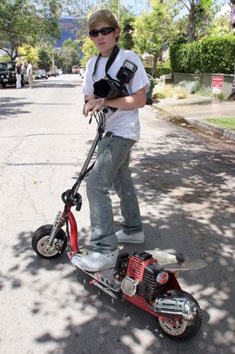 在狗仔劣迹和媒体丑闻频发的年代里,却有越来越多的人投入到这个行业中来。一名出生于1993年的少年在13岁时便成为颇有名气的狗仔。这位名叫奥斯汀·维舍迪克的少年居住在好莱坞,其父母有着强大的娱乐圈艺术圈人脉,“天生的资源”让奥斯汀拿起了相机。2010年,一部以奥斯汀生活为主题的纪录片《少年狗仔》在好莱坞上映。图为奥斯汀·维舍迪克。