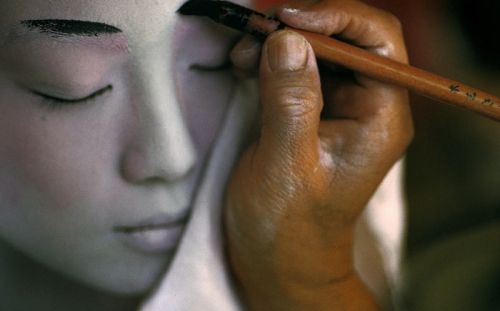 这名艺伎即将开始她的处女秀,化妆给予了特别照顾。