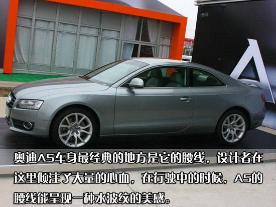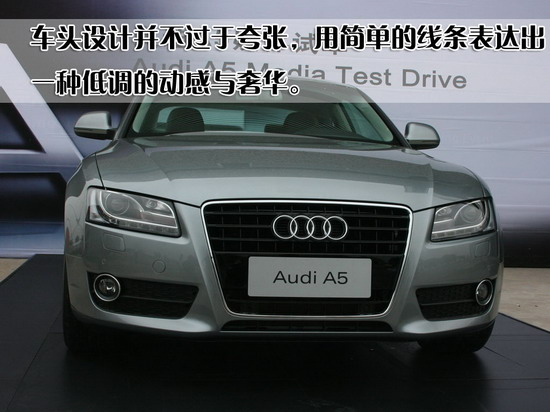 奥迪A5“优雅的运动”设计理念把这一 奥迪 独有的设计语言表现到了一个新的高度,重新诠释了奥迪百年传承的高雅、动感的设计美学。这款车具有动感十足的轮廓:车身宽大、底盘低、前悬短,精炼勾勒的车身线条与富于表现力的车头优雅大方。除此之外,奥迪A5用宽敞舒适的驾乘空间重新定义了轿跑车的设计:长达2751mm的轴距,使后排乘坐者拥有足够宽敞的空间。此外,宽达1米,容量455升的宽大行李箱,能轻松容纳包括高尔夫球包在内的巨大物件轻松进出,足够一次长途旅行的物品存储。