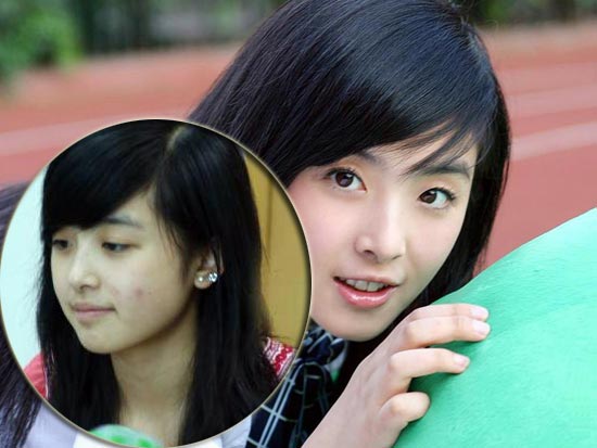 素颜靓颖,肌肤还是不错的,但是就是整体LOOK不够有星相,还是小烟熏比较适合她。