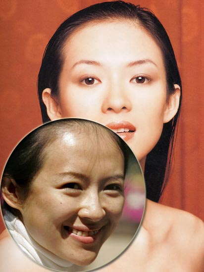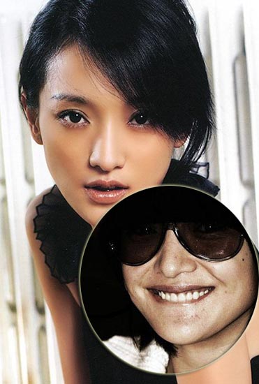 卸妆后的章子怡,肤色光泽感不错,一两粒小痣也还蛮可爱的!
