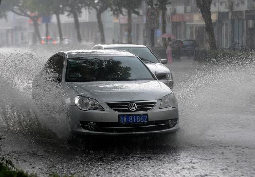8月3日,车辆冒雨在杭州街道上行驶。近日,今年第9号超强台风“梅花”正在向我国东南沿海逐渐靠近。浙江省气象台预计8月6日前后,“梅花”可能对浙江产生严重影响,部分地区有大暴雨,局部特大暴雨,并伴有强风。浙江省气象局已于8月3日11时启动台风气象业务服务四级应急响应。新华社记者 韩传号 摄