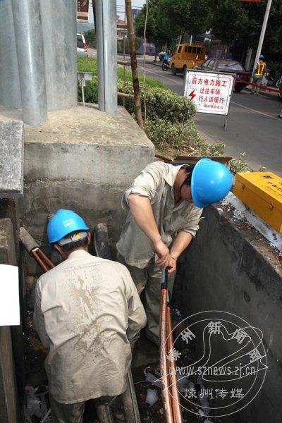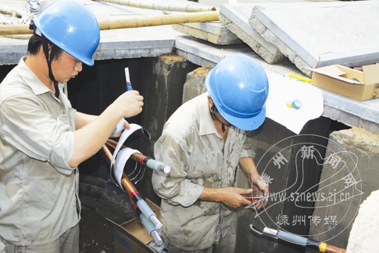 随着高温天气的持续,用电负荷激增,致城南变负荷过大。市供电局对城南变10千伏市心1135线、消防141线等用电负荷实施割接,将部分负荷割接至110千伏中宅变,从而确保我市电力迎峰度夏。图为昨日电力工人冒高温进行割接的场景。