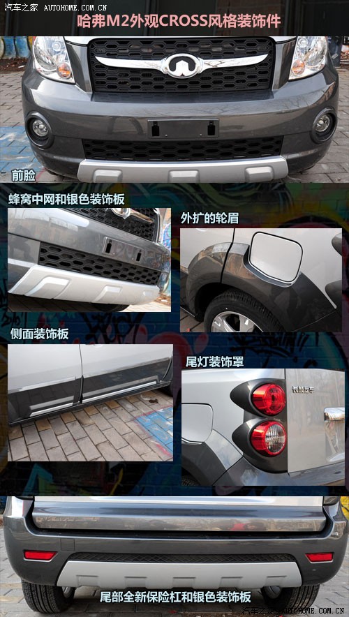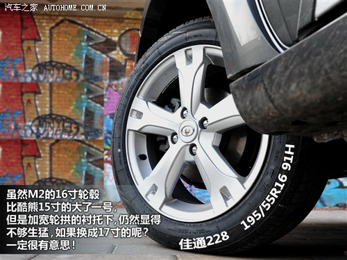 CROSS风格的设计是哈弗M2的另一个卖点,相比有些过于个性的酷熊,哈弗M2更加阳光、也更加运动,显然更符合国人对车辆外形的需求。此外金属感极强的16寸铝合金轮毂也是它吸引眼球的地方,这样大胆的设计在自主车型中还是不多见的。