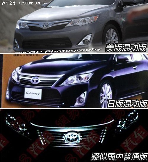 『上面红色官图为美版凯美瑞(普通版)车灯部分,和美版混动版区别主要在雾灯处』