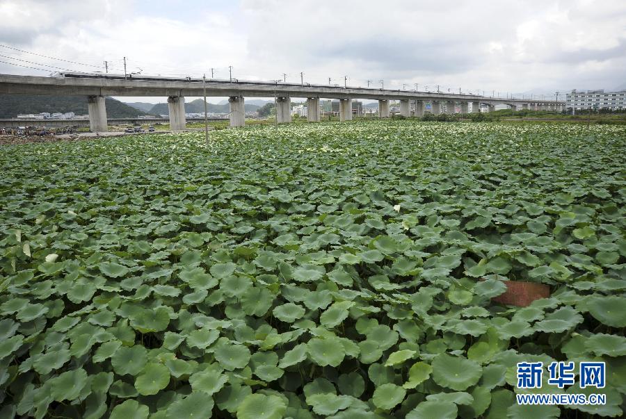 一辆高铁列车从温州“7.23”事故路段驶过(2011年7月29日摄)。8月10日,铁道部部长盛光祖在接受新华社记者采访时表示,在高铁运营初期,中国将全面下调高铁运行时速。具体在运行速度方面:设计最高时速350公里的高铁,按时速300公里开行;设计最高时速250公里的高铁,按时速200公里开行;既有线提速到时速200公里的线路按时速160公里开行。速度下调的列车,票价也做适当下浮。 新华社发(钮一新 摄)
