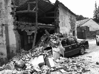 皮卡车闯进危房