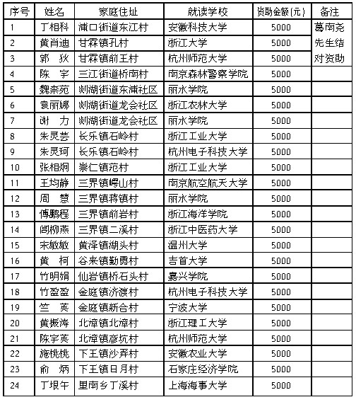 2011年慈善全程助学(大学本科新生)名单