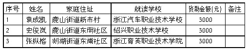 根据嵊慈﹝2011﹞8号文件精神,经开发委、乡镇(街道)调查上报,市慈善总会核实审议,初步确定下列人员为慈善助学对象,现予以公示,公示期为三天,接受社会监督。监督电话:83263559  83263525  83263538
