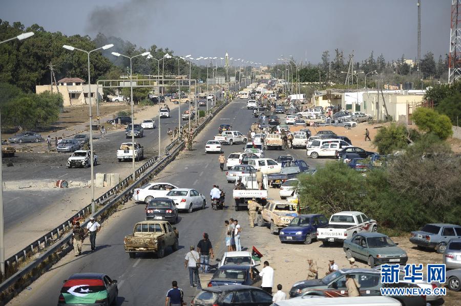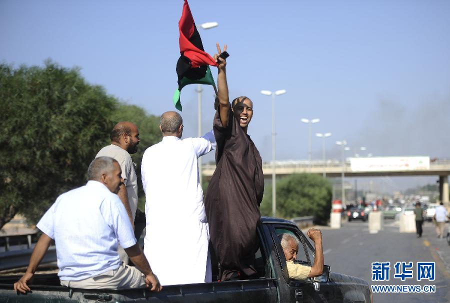 8月21日,利比亚反对派武装进入的黎波里市郊。利比亚“全国过渡委员会”委员阿卜杜拉·迈胡卜22日凌晨对记者说,反对派武装已控制首都的黎波里,目前正在市内清除卡扎菲残余部队。新华社/法新