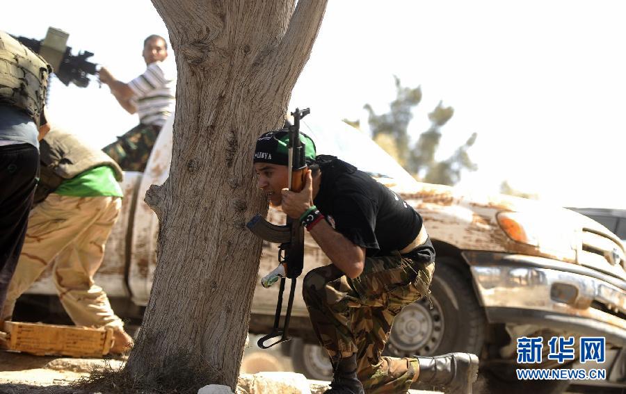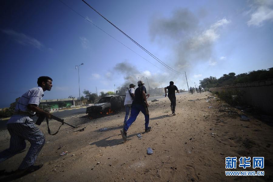 8月21日,一些利比亚反对派武装人员在利比亚首都的黎波里西部地区与政府军交战时跑步前进。当天,利比亚首都的黎波里继续传出巨大爆炸声。反对派说,武装人员正从三面围攻首都的黎波里,已占领的黎波里国际机场和一座军火库。新华社/法新