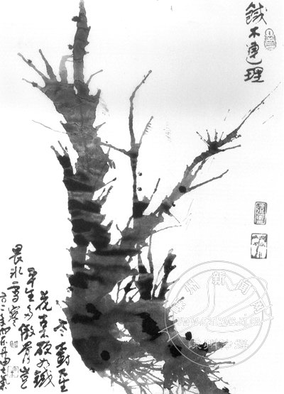 他嘴巴里吹出的不是二氧化碳,而是东风,所以他又常常把吹出的画作取名为《东风吹出第一枝》。