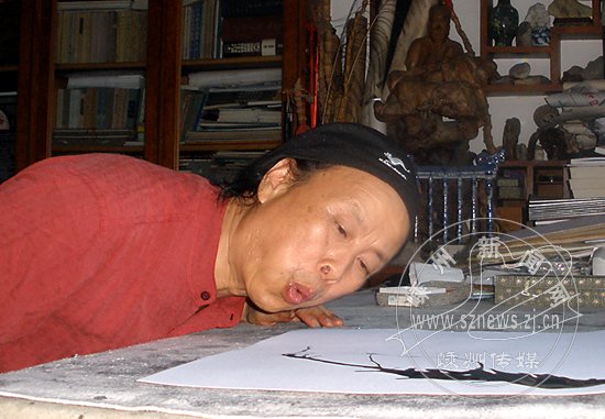人物名片:尹向东,中国民间文艺家协会手指画研究专业委员会副主任、《绍兴书画史》编委、《王羲之研究》主编,以拳书、掌画、吹画三绝享誉书画界。