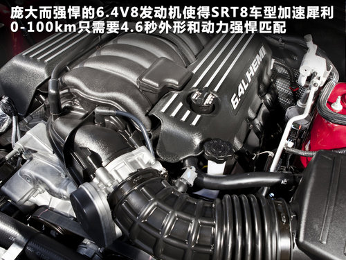 底盘方面使用了更加运动支撑性能更好的弹簧。而且降低了底盘达2.5cm使得整车重心更低高速行驶风阻和稳定性提升明显。将6.1L排量发动机调校到6.4L排量。突出起步加速性。可以输出最大342Kw(465马力)和最大628牛米的扭矩。发动机燃油效率对比旧款车型提升了13%,这是由于新车配备了一个新的主动式排气系统,该系统能够让克莱斯勒的汽缸钝化节油技术能够在更宽的发动机转速范围内发挥作用,使用5档手自一体变速器。