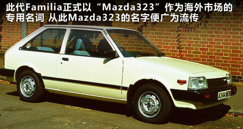 在出口方面,此代Familia正式以“Mazda 323”作海外市场的专用名词。Mazda 323登陆到欧洲、美国等市场上同样收得普遍的好评,因而使Mazda 323的名字被广泛认知,在往后的数代里均固定命名Mazda 323。1983年1月进行了小改款,增加了搭载电子燃油喷射的EGI引擎,四门桥车款前脸则回归至掀背款同款色的设计。1983年6月,Familia系列首次出现涡轮版本,配置编号“XG-R”的三门掀背款与配置编号“XG-Turbo”的四门桥车款。