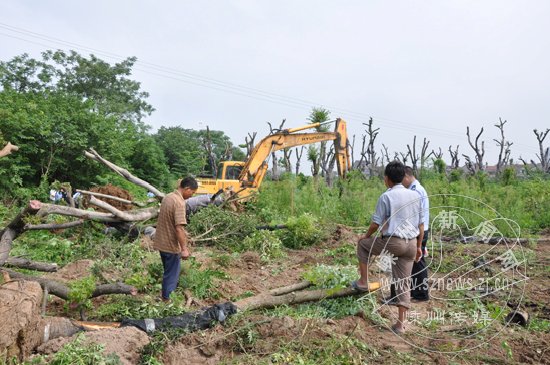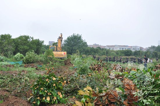 从上午7点半开始,执法人员在三江街道高村自然村和隔水自然村开始实施铲除未及时清除的花木和抢种的花木,经过2个半小时的作业,15亩花木包括其中的10亩抢种花木被全部清除,这一行动有效地维护了公平正义,打击了歪风邪气。
