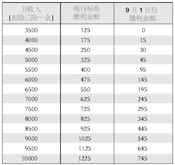 纳税人今年9月1日(含)以后实际取得的工资薪金所得,适用新个税法计算个税,即免征额按3500元计算;纳税人9月1日前实际取得的工资薪金所得,适用旧个税法计算个税,即免征额按2000元计算。也就是说,9月份起发放的,无论是今年8月、7月还是提前发放的今后工资薪金所得,都按新个税法执行。但是,8月份发放的工资薪金所得,须按老个税法实施条例计算。