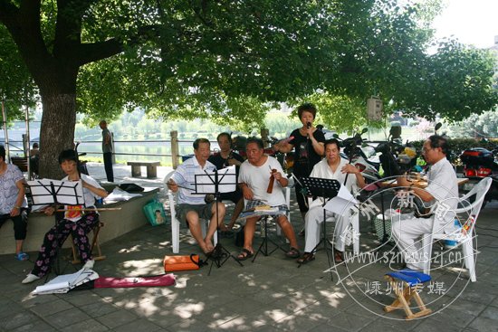 剡湖畔,一棵大樟树下有个热闹的戏迷角。每天上午7时左右,一群越剧爱好者就自带胡琴、鼓板,自娱自乐唱起越剧,越音缭绕在剡湖岸边。