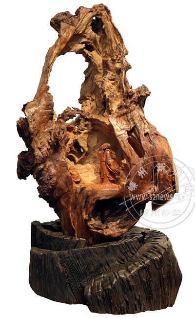 近年来,嵊州根雕作品愈来愈引起人们的关注和热爱,许多新的工艺和闪光的亮点不断涌现,有的以古沉木的开发见长,有的以柏木根的肌理美取胜,而浙江省工艺美术大师郑兴国却在根雕创作中注重作品意境的营造,在不断探索中取得了一定的成效,其中他创作的《洞天胜境》便是成功的一例。
