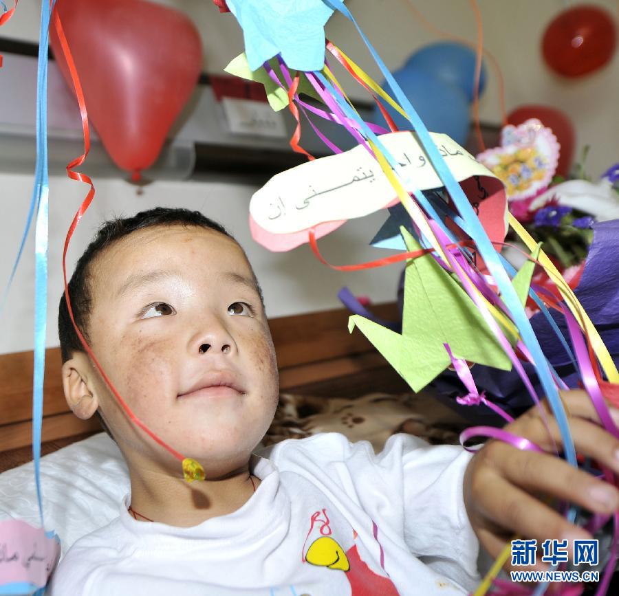 当日,正在吉林省长春市骨伤医院接受医疗救助的西藏男孩阿旺桑旦迎来了一批新朋友:来自长春市花园小学的学生。学生们将礼物放满了阿旺的病床,并祝愿他中秋快乐,早日康复。 阿旺今年7岁,家住西藏洛扎县洛扎镇嘎布村,患有先天性马蹄内翻足畸形。在社会爱心人士的帮助下,阿旺被送到长春接受治疗。目前,阿旺的双脚已分别做完手术,并有望在今年10月痊愈后用健康的双脚站立、走动。 新华社记者王昊飞摄