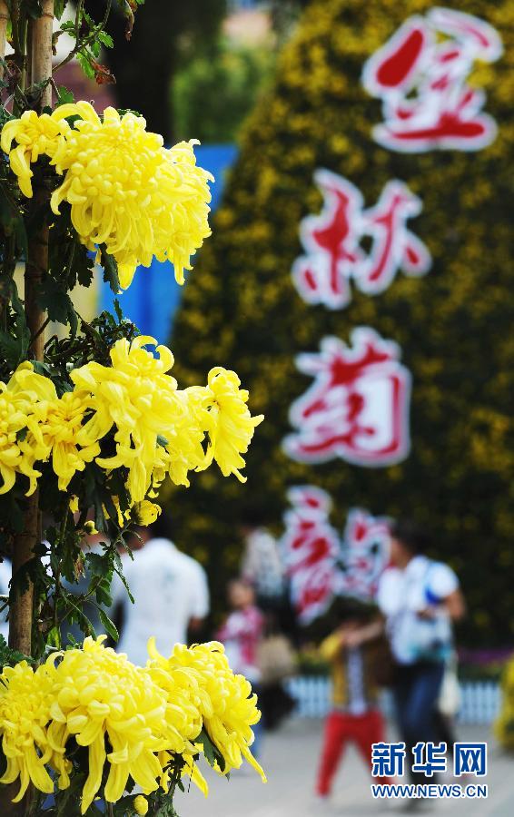 9月11日,市民在菊花展上赏菊。当日,许多冰城市民来到在哈尔滨市香坊公园举行的黑龙江第八届菊花展,休闲赏菊迎接中秋佳节。 新华社记者王建威摄