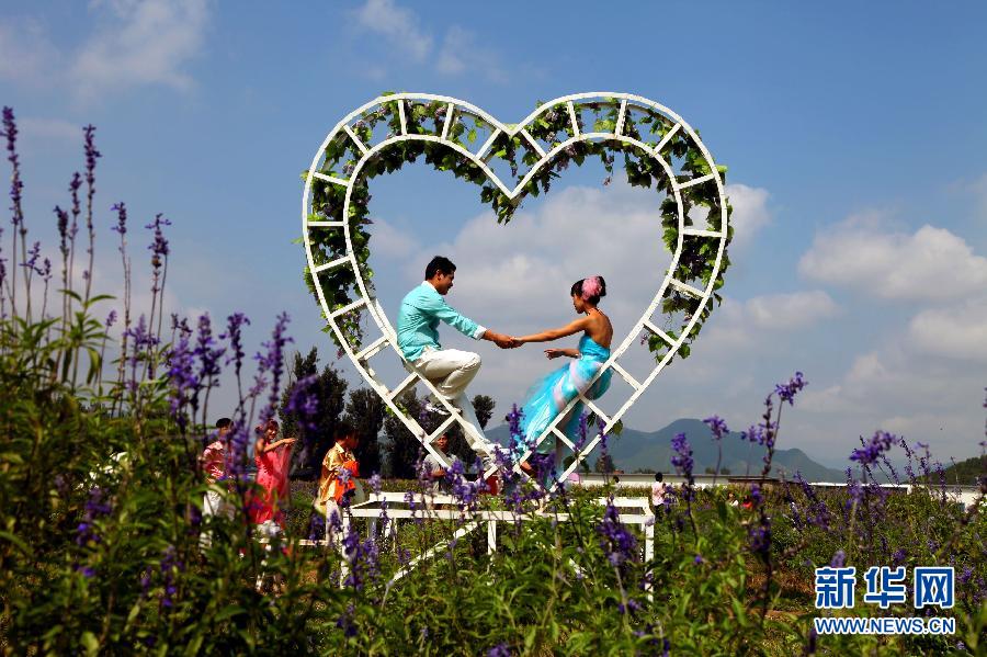 9月11日,一对新人在京郊怀柔一家庄园拍摄婚纱照。中秋节小长假第二天,北京市怀柔区一家庄园内拍摄婚纱照的新人纷至沓来。 新华社发(卜向东 摄)
