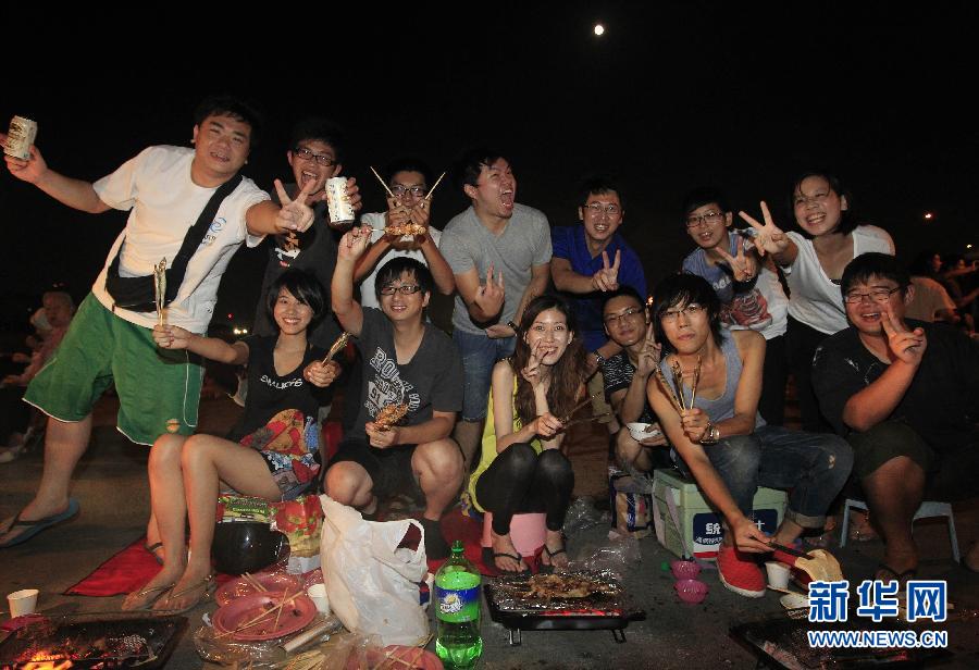 9月11日,在台北一处河滨公园,人们在月光下享受烤肉的乐趣。中秋佳节来临之际,招呼亲朋好友一享烤肉之香在台湾渐成习俗。据台湾媒体报道,台湾兴起中秋烤肉的习俗始于几十年前。当时,台湾两家知名酱油厂进行烤肉酱的广告大战炒热了中秋烤肉的氛围。新华社记者 任正来 摄