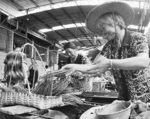 近日,嵊州市江滨市场上一位农妇在销售自家竹园里采收来的鲜竹笋。