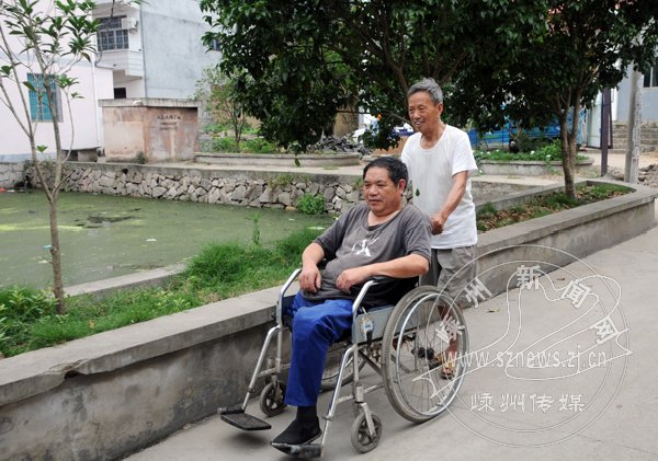 在北漳村,每天清晨或傍晚,人们总会看到84岁的黄灿龙推着一辆轮椅,轮椅上坐着64岁的王林樟,一路上有说有笑。他们既不是父子,也不是兄弟,却在这条熟悉的村路上走了10多年。