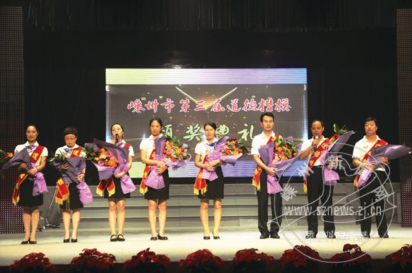 昨晚,市第三届“道德楷模”颁奖晚会在天乐集团文化宫举行。嵊州传媒爱心公社荣获“爱心帮扶道德楷模”称号。