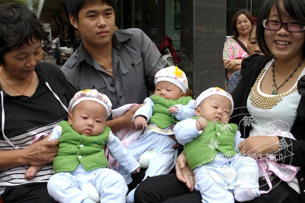 前日,记者在市区城北菜场门口,看到很多人围着一家人,惊喜地看着三个大人抱着已满四个月的三胞胎婴儿,其乐融融地聚在一起,享受着天伦之乐。