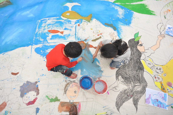 鲜艳的花朵、火红的太阳、美丽的蝴蝶;天空的云彩、地上的蘑菇;森林中的大象,田野里的向日葵;随意涂抹的颜色,无尽的想象……活动现场,这些环保小卫士和父母一起认真地描绘着自己心中的那片充满绿色生机与活力的家园。创作期间,一位姓邓的小朋友告诉记者:“我要把彩虹画在地上,因为那样地球才更美丽!”