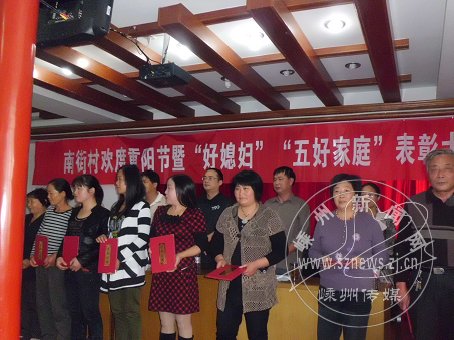今年的老人节,三界镇南街村举行了“欢度重阳节暨第五届好媳妇”、“五好家庭”表彰大会。村两委会对四位“好媳妇”、六户“五好家庭”颁发了荣誉证书。同时,村民们还自编自演了越剧、歌曲、舞蹈、乐曲等节目,欢度重阳。