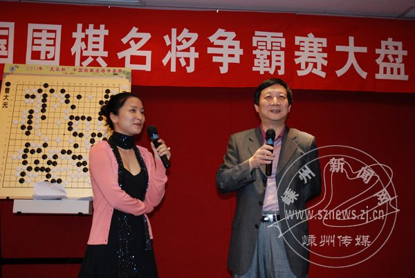 10月6日下午,曹大元九段刚结束与马晓春九段的鏖战,便到现场与观众见面,还与美女棋手毛昱衡一起为大家讲解大盘。