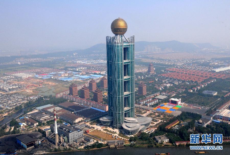 这是华西村龙希国际大酒店(10月8日摄)。 10月8日,江苏省江阴市华西村328米高的龙希国际大酒店建成开业。这座酒店总投资30多亿元,共74层,造型为“三足鼎立,明珠置顶”,楼内设有800多套客房和餐饮、娱乐、会议、健身、休闲、文化、购物以及高级会所等设施,并陈列众多艺术珍品。该大楼将为华西村旅游业增添新优势,同时可安排3000人就业。新华社记者 孙参 摄