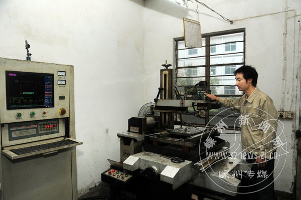 近日,市金舟电声公司员工正在用线切割工具开发电声产品新模具。