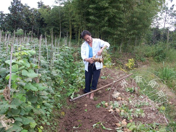 这段日子,石璜镇楼家村金盘自然村农民周金法特别忙碌,他每天清早都要到地里掘地瓜,然后骑车赶周边乡镇的物资交流会,去销售他的地瓜。目前他的0.1亩地瓜销售收入已达1500元,照此地瓜收入可达4500元,亩均产值1.5万元。由于他自产自销,能吃苦,经济效益比其他批发销售的农户要增加50%。他说:地瓜种得好还得销得俏,这样收入才会好。图为周金法在地里收地瓜。