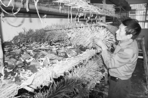 还有一个星期左右的时间,我市晚秋蚕的采茧工作就要开始了。昨天,记者在嵊州石璜镇堰底村看到,蚕农们家中的蚕宝宝们纷纷“上山”结茧。据村里养蚕专家商志超介绍,堰底村目前共有蚕农80多户,每年春、夏、中秋、晚秋养殖四季桑蚕,晚秋蚕是除春蚕外最重要的一期蚕。