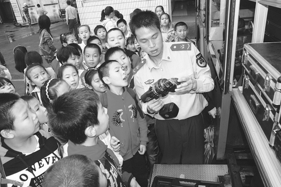 “如果生活中遭遇火灾,我们第一时间应该做什么?”“报警,喊人,赶紧跑……”。10月14日,嵊州市消防大队迎来了鹿山小学300余名师生,师生们在消防官兵的带领下参观了中队的车辆器材装备,零距离体验消防生活,学习防火技能。【来源:天天商报】