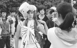 国庆假期,来自嵊州中学动漫社团的动漫爱好者们,在嵊州文化广场上表演COSPLAY(动漫真人秀),开了嵊州市有组织进行动漫真人秀展示活动的先河。表演者穿上华服,戴上假发,拿上精美的道具,一个普普通通的年轻人转眼变成具有超凡能力的女神或武功高强的大侠,成为自由神中的人物。【来源:天天商报】