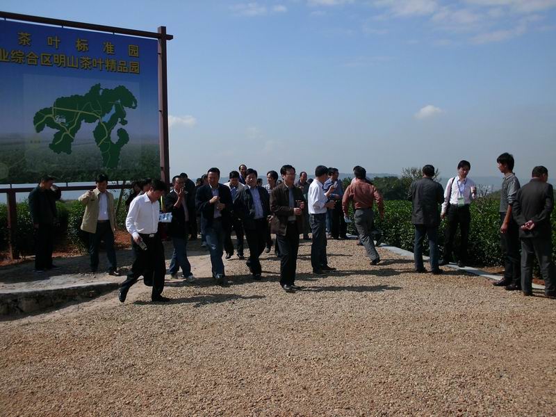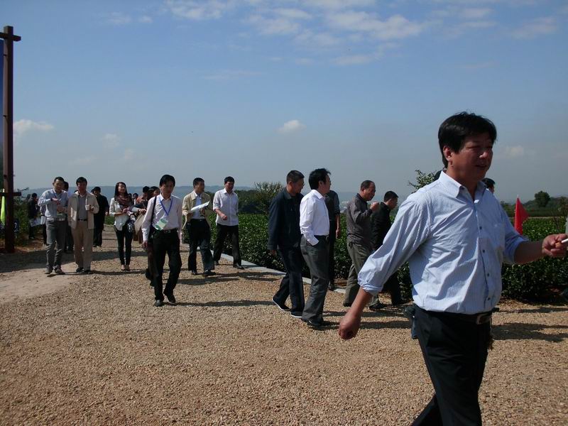 10月19日,绍兴市现代农业园区和粮食生产功能区建设现场会在我市召开,上午10时,与会全体成员,乘坐大巴驱车前来黄泽明山参观考察。大家沿途及下车实地参观了具有创建规模3000亩的黄泽明山茶场,对这里的优越环境、太阳能捕虫、生态育茶、路渠配套等现代化设施及特别是对低产低效的老茶园全面实施改造的做法表示赞赏。