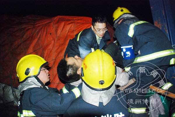 在现场,前面的货车司机在事故中没有受伤,后面货车车头则在事故中被夹扁,司机受伤被困在驾驶室内,不时发出惨痛的呻吟声,副驾驶室的女乘客膝盖以下被卡死在变形的车内,身上多处受伤,情况十分危急。