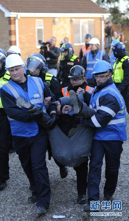 10月19日,在英国巴西尔登附近的戴尔农场,一名抗议者被移走。英国警方19日开始清理国内最大的流浪者非法居住区“戴尔农场”。部分居住者及支持者与警方发生冲突。戴尔农场位于首都伦敦以东大约50公里,住着大约400名流浪者。戴尔农场“非法”争议自2001年开始,英国一家法院上周裁定予以清理。当地“居民”主要是爱尔兰流浪者,他们称清理行动针对弱势群体,侵犯他们的权利。新华社/法新