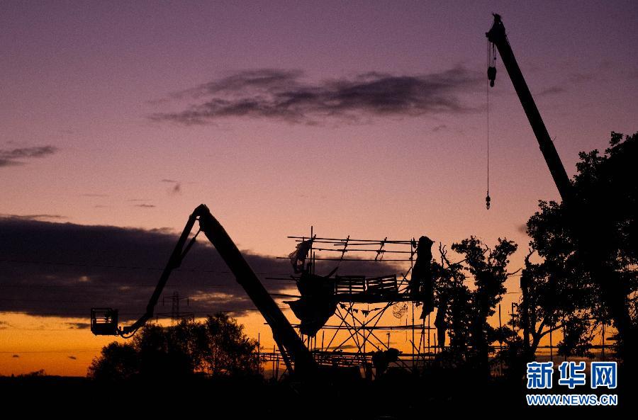 10月19日,在英国巴西尔登附近的戴尔农场,起重机拆除路障。英国警方19日开始清理国内最大的流浪者非法居住区“戴尔农场”。部分居住者及支持者与警方发生冲突。戴尔农场位于首都伦敦以东大约50公里,住着大约400名流浪者。戴尔农场“非法”争议自2001年开始,英国一家法院上周裁定予以清理。当地“居民”主要是爱尔兰流浪者,他们称清理行动针对弱势群体,侵犯他们的权利。新华社/法新
