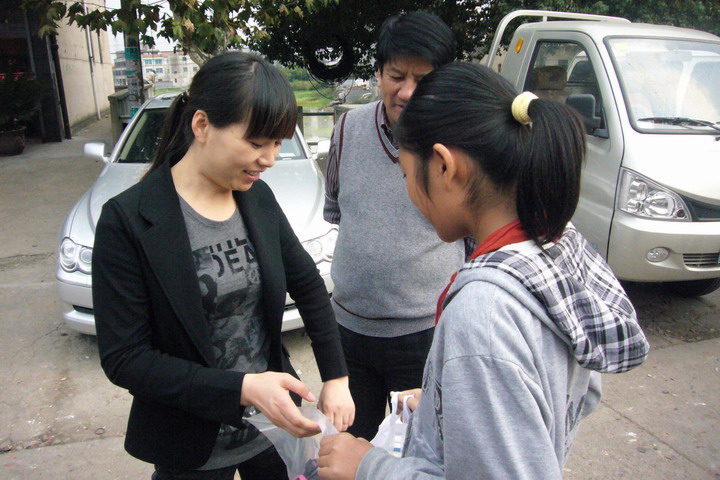 10月21日下午,在绍兴市、嵊州市关工委的牵线及镇关工委韩国永专职副主任的陪同下,爱心人士沈建红夫妇特地从百里之远的绍兴城区前来看望结对的贫困学生孙倩同学,首次便给她带来了1000元扶贫金及许多学习生活用品,并鼓励孙倩要充满信心和勇气,在老师的教育下,加倍刻苦学习。他们还将自己的联系电话告诉给她的班主任周情如老师说:“只要今后孙倩在学习上、生活上有困难,请及时联系我们,我们会尽力资助、照顾好孙倩,直至她完成学业……”