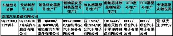 SQR7160 推测车型:瑞麒G2 1.6DVVT+CVT